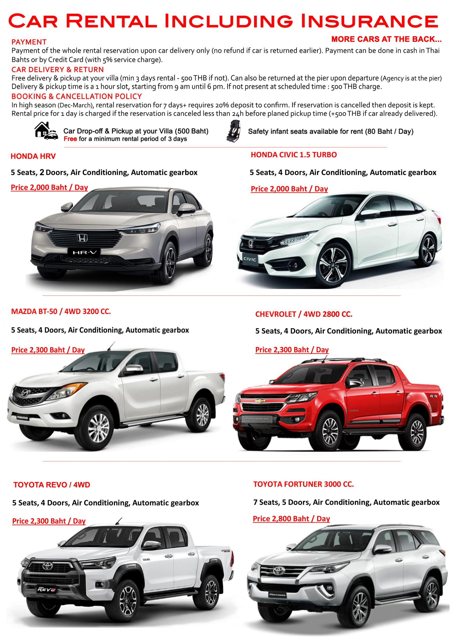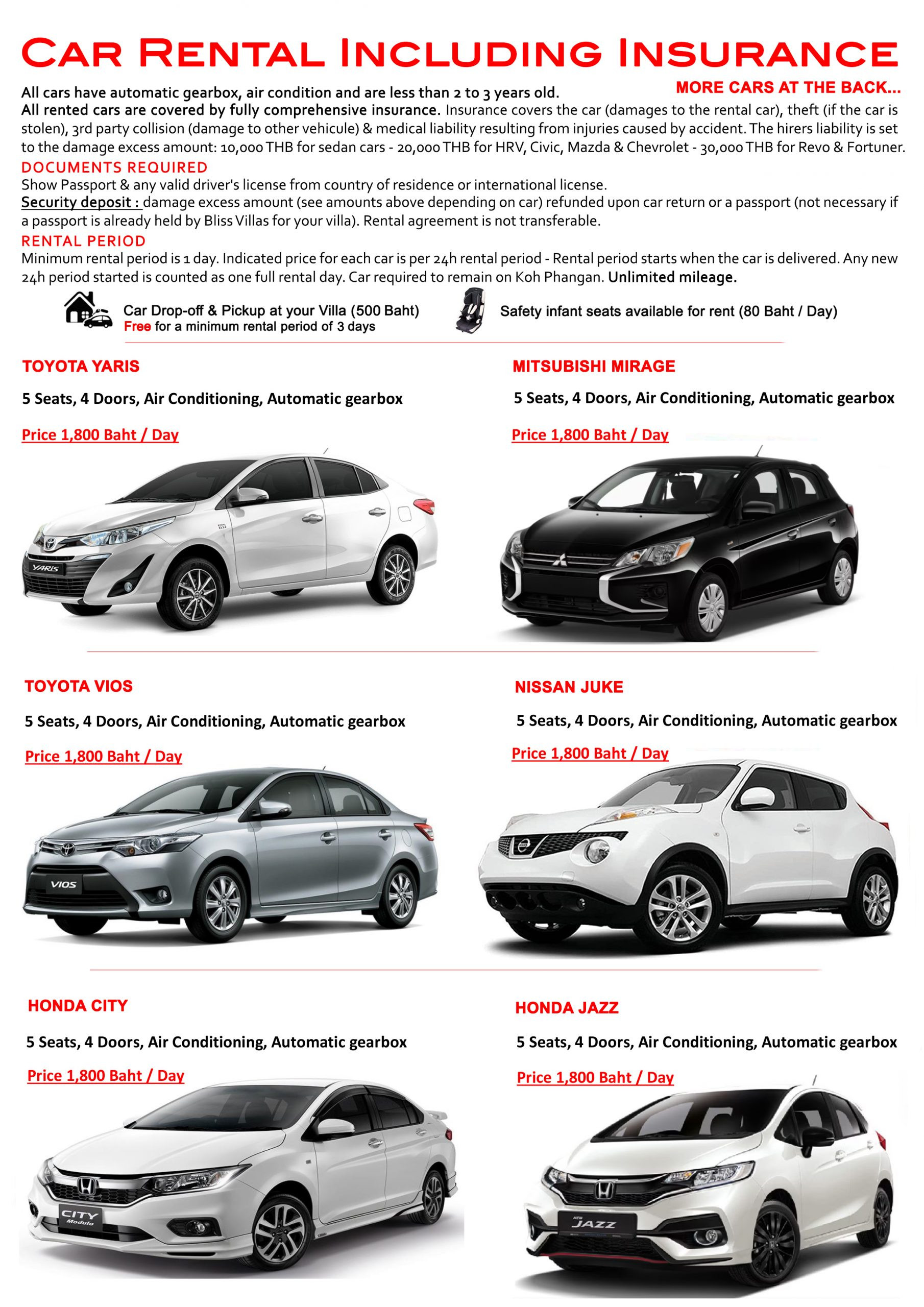 Always ask for price before (usually price per person – Young kids do not pay), where you are (Bliss Villa left, middle or right) and where you are going.